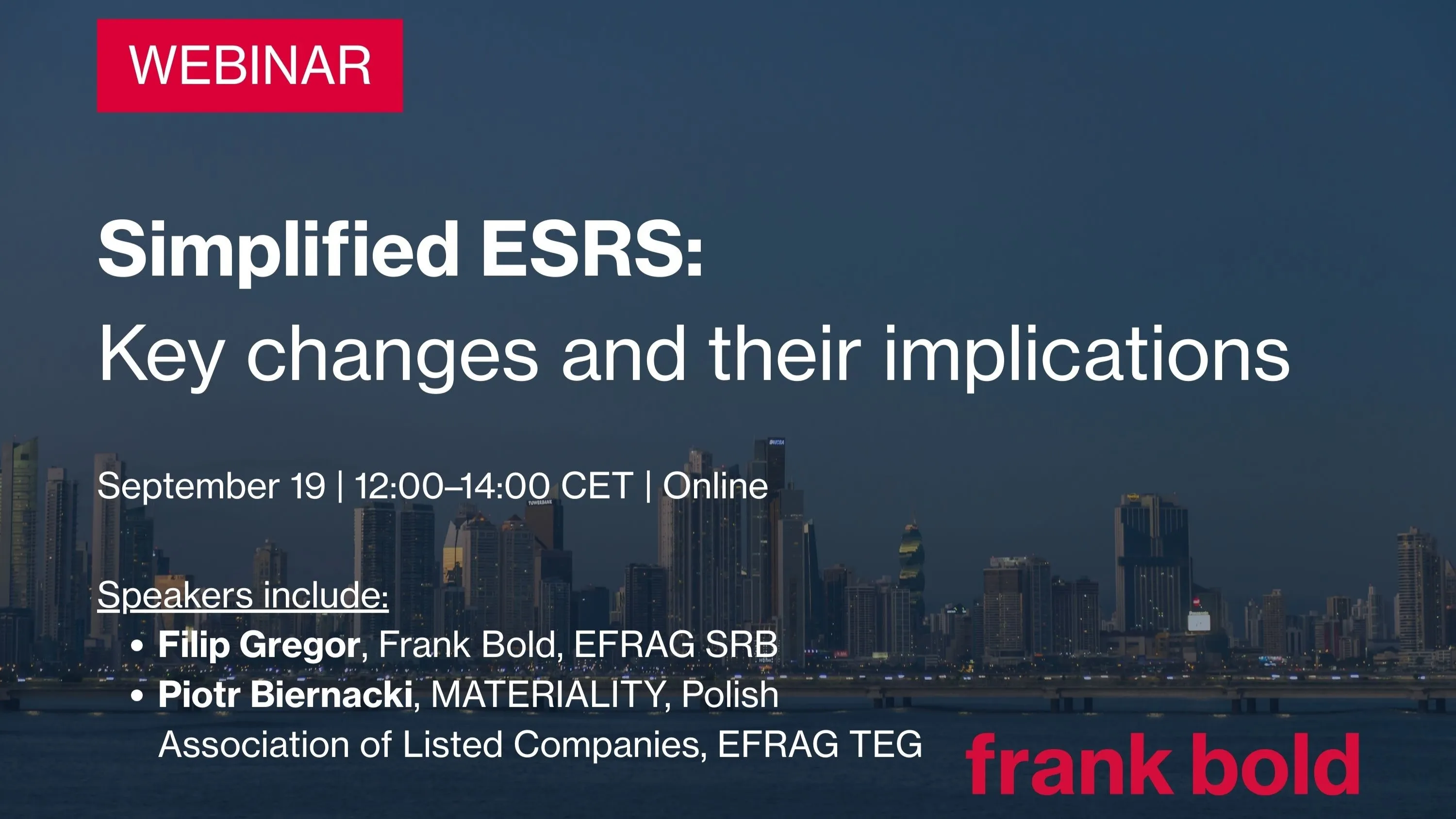 The session will include insights from Filip Gregor, main ESG expert at Frank Bold and member of EFRAG’s SRB, Piotr Biernacki, MATERIALITY and Stowarzyszenie Emitentów Giełdowych (Polish Association of Listed Companies), and member of EFRAG’s TEG and representatives of the EFRAG Secretariat.